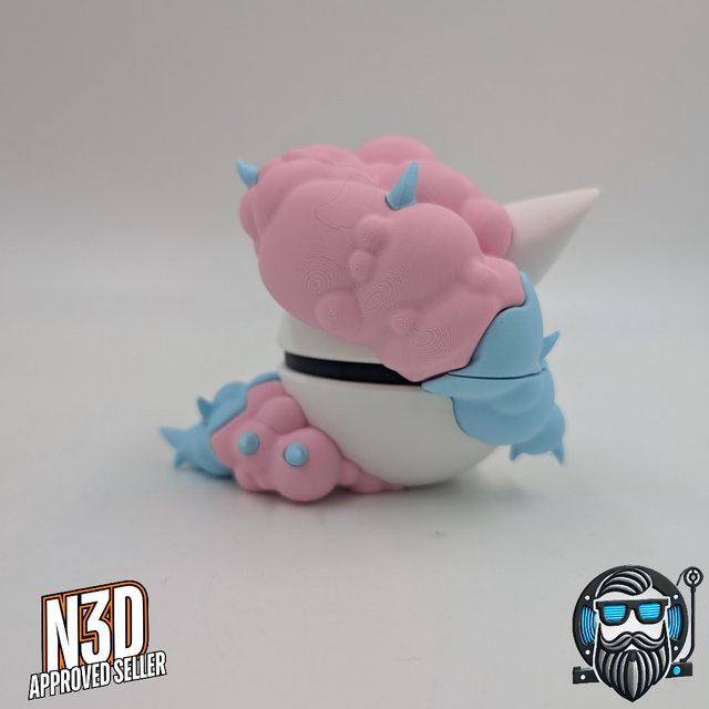 Cette Pokéball Ponyta de Galar imprimée en 3D capture toute la douceur et la magie de sa crinière rose et bleue. Créée par N3D et fabriquée par Barbu 3D Print, elle mêle univers Pokémon, design kawaii et finitions soignées pour un rendu unique et original.