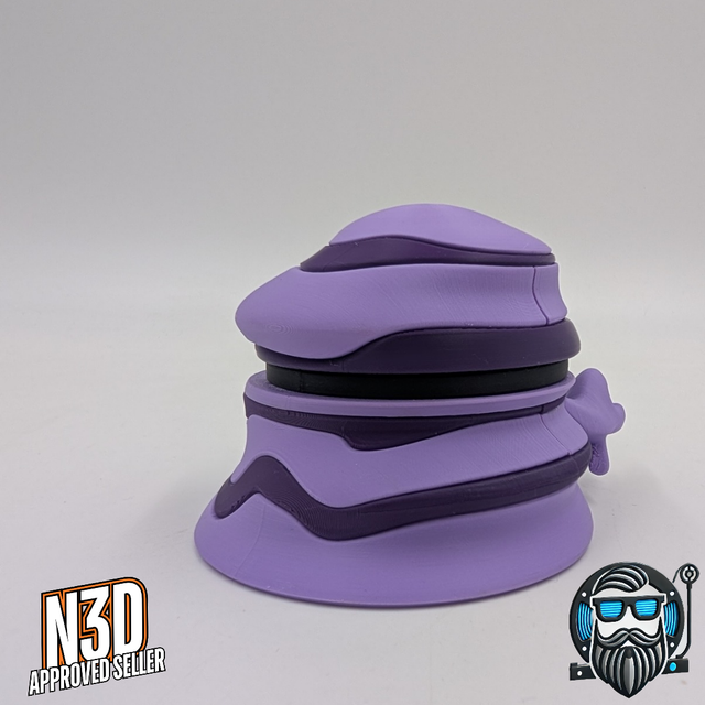 Cette Pokéball Tadmorv imprimée en 3D adopte un design organique inspiré du célèbre Pokémon poison. Avec ses formes coulantes et son effet “slime” en relief, elle revisite l’univers Pokémon avec une esthétique audacieuse et détaillée. Créée par N3D et fabriquée par Barbu 3D Print, elle allie passion geek, qualité artisanale et finitions soignées.
