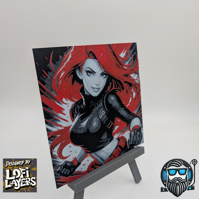 Transformez votre espace avec cette plaque décorative imprimée en 3D, conçue par Lofi Layers et fabriquée par Barbu 3D Print. Ce visuel met en scène une héroïne charismatique au style pop art dynamique, avec des contrastes forts et une énergie visuelle inspirée des univers comics et geek. Une pièce décorative qui attire immédiatement le regard.