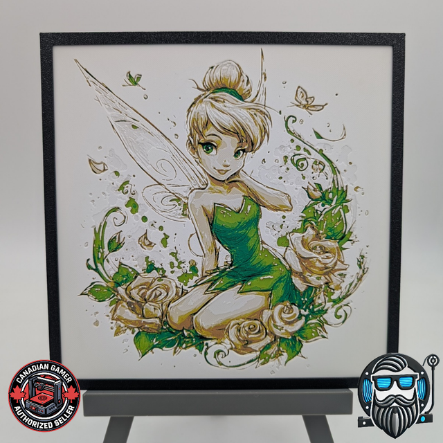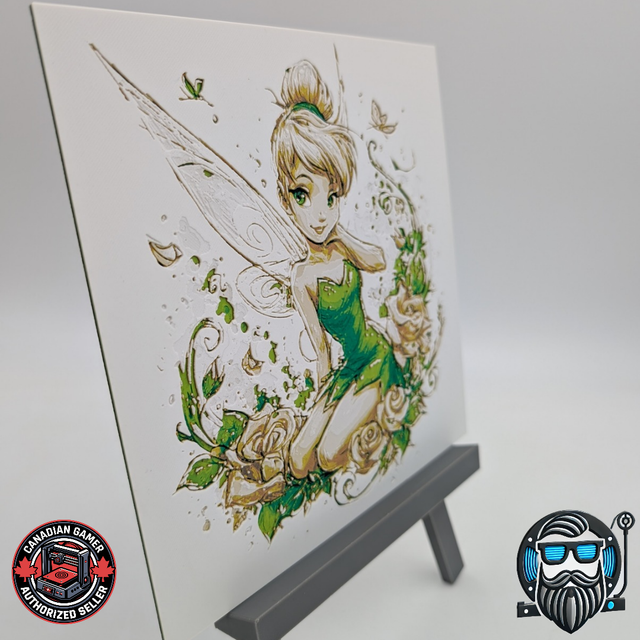 Cette création Hueforge met en scène une élégante fée entourée de roses et de volutes végétales dans un style fantasy lumineux. Design signé Canadian Gamer, fabrication artisanale : un tableau texturé unique qui sublime instantanément votre déco gaming ou créative.