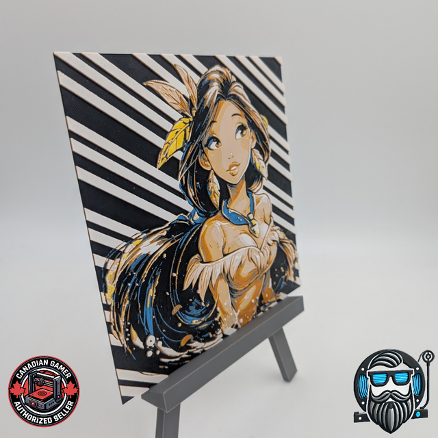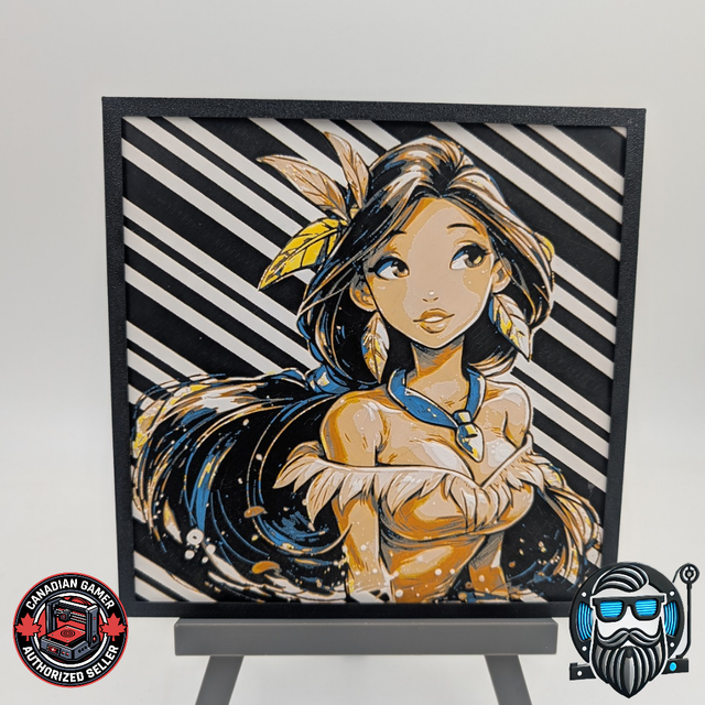 Apportez du caractère à votre intérieur avec ce tableau décoratif 3D au style graphique puissant. Inspirée d’une figure féminine amérindienne modernisée, cette création signée Canadian Gamer mêle élégance, douceur et contrastes dynamiques. Les lignes diagonales et les touches dorées offrent un rendu visuel profond et contemporain.