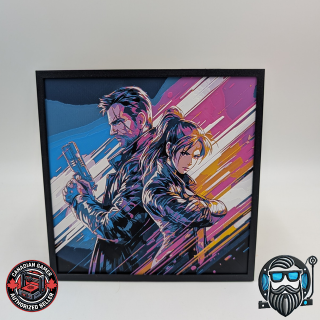 Transformez votre espace avec cette impression 3D Hueforge au style cinématographique et dynamique, mettant en scène un duo charismatique au regard intense. Les contrastes de couleurs et les lignes graphiques apportent une forte identité visuelle, idéale pour une décoration geek moderne et affirmée.