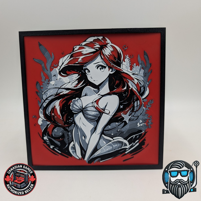 🌊 Apportez une touche élégante et graphique à votre décoration avec cette impression 3D Hueforge au style marin iconique. Cette illustration de sirène au regard doux et au mouvement fluide se détache sur un fond rouge intense, offrant un contraste fort et moderne, parfait pour un intérieur geek ou pop culture.